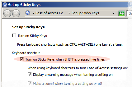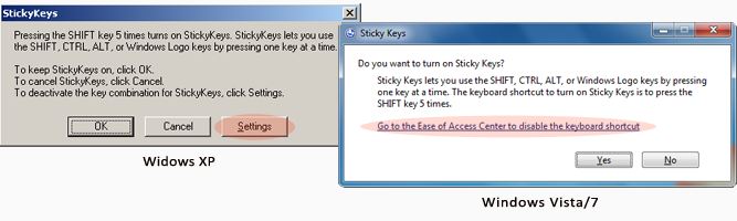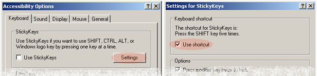 The sticky keys feature lets you use the SHIFT, CONTROL, ALT or WINDOWS Logo