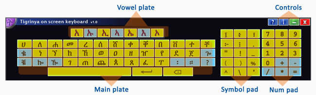 The Tigrinya On-Screen Keyboard has four sections, reflecting the arrangement